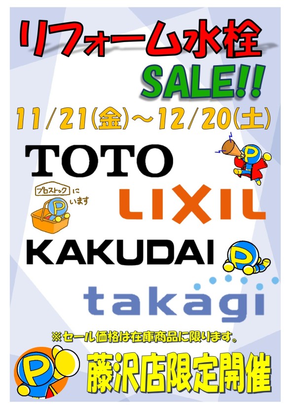 プロストック藤沢店にてリフォーム水栓セールを開催致します!!