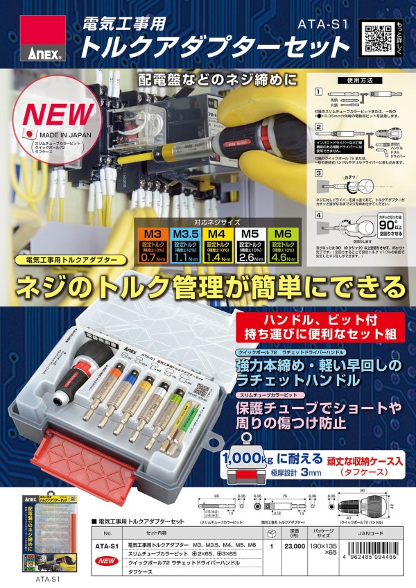 ●トルクアダプター、クイックボール72ラチェットドライバーハンドル、スリムチューブカラービットのセット組(頑丈な収納ケース入)