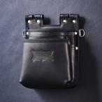 BAG 総ヌメ革、グローブ革 鳶職向仕様ツーウェイタイプヌメ革2段腰袋〈ブラック〉 (KBS-201TB)
