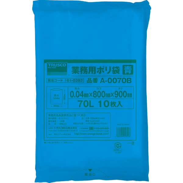 梱包結束用品 ポリ袋 TRUSCO 業務用ポリ袋 厚み0.04X70L 青 10枚入 (A-0070B)