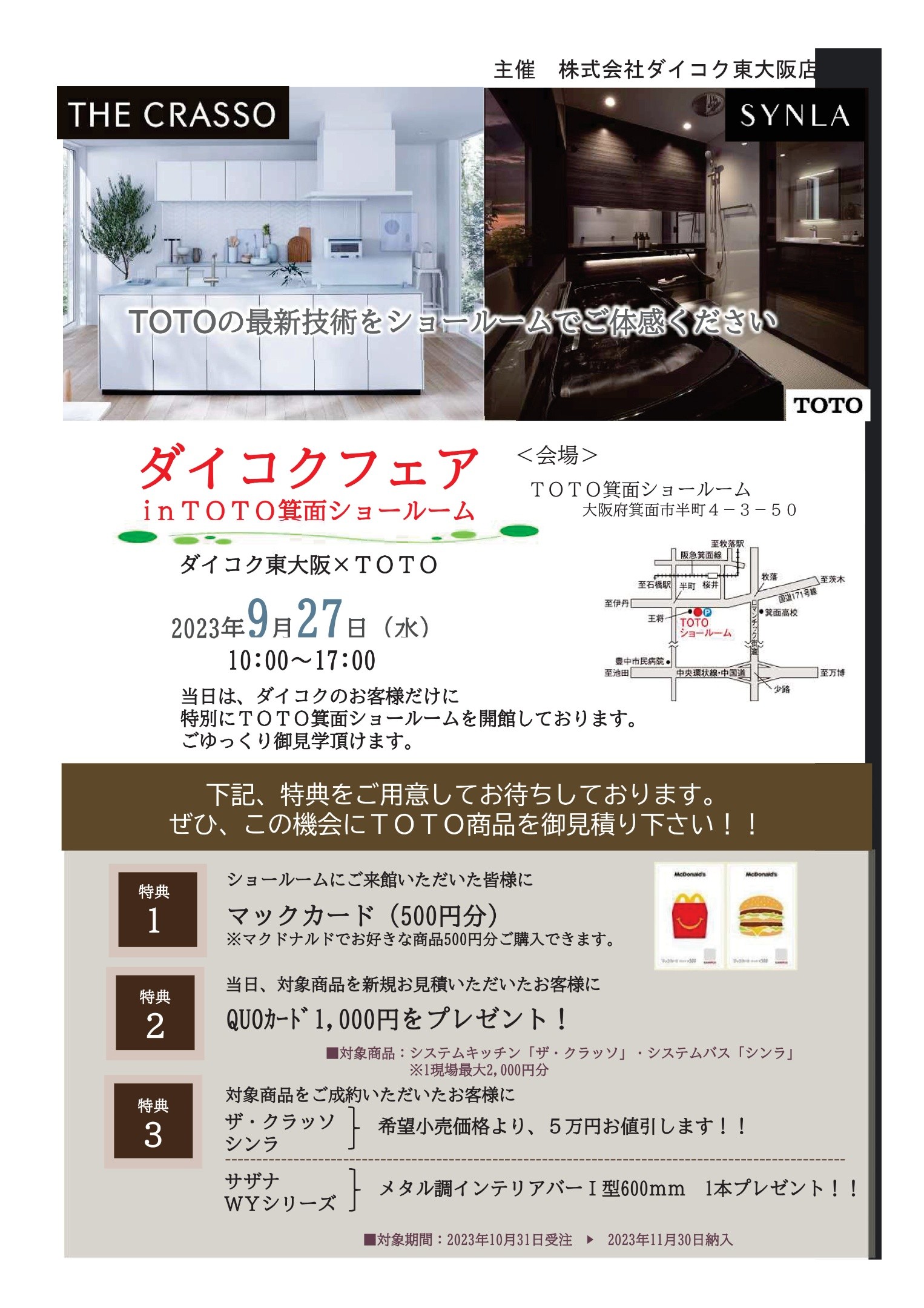 9月27日、TOTO箕面ショールームにてイベントを開催いたします!