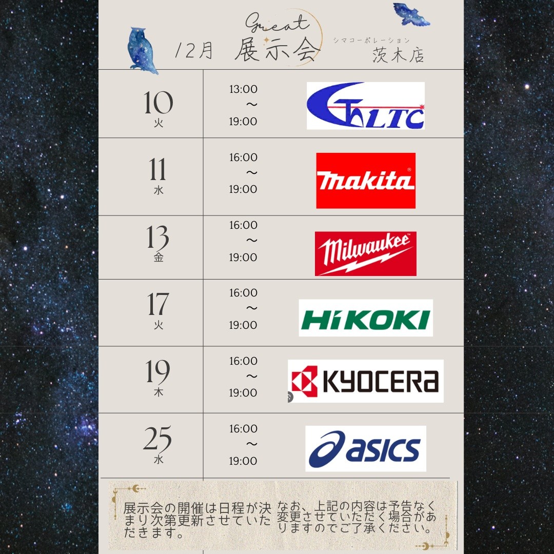 お知らせ「◆12月のイベント情報◆「シマコーポレーション茨木店」」