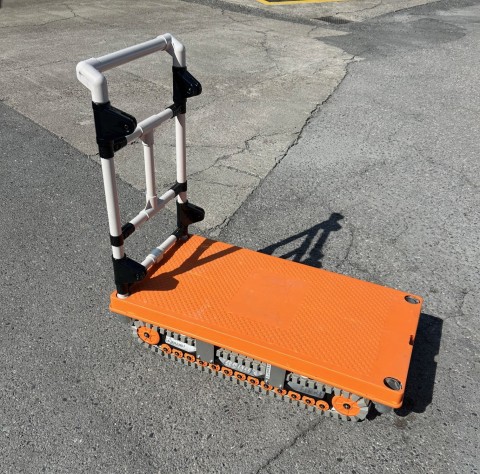 不整地を物ともせず進んでいく台車、20万円もするんですか?!