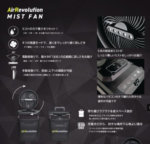 お知らせ「熱中症対策に🧊ミストファン KNネクスト Air Revolution販売中✨【本田屋 柏豊四季店】」