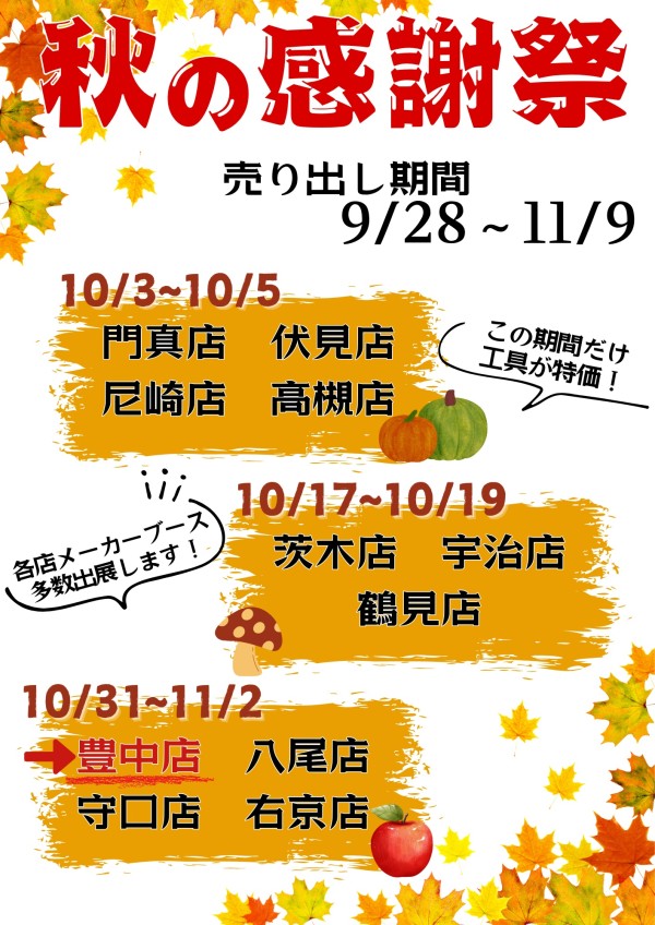 お知らせ「🍁期間限定特価🍁 秋の感謝祭開催!【シマコーポレーション豊中店】」