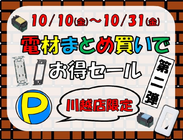 お知らせ「🎃数量限定特価🎃即戦力セール・電材まとめ買いセール開催中!【プロストック川越店】」