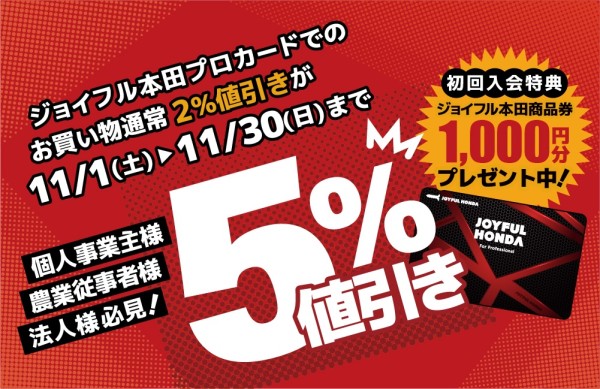 対象店舗でのジョイフル本田プロカードでのお買い物が