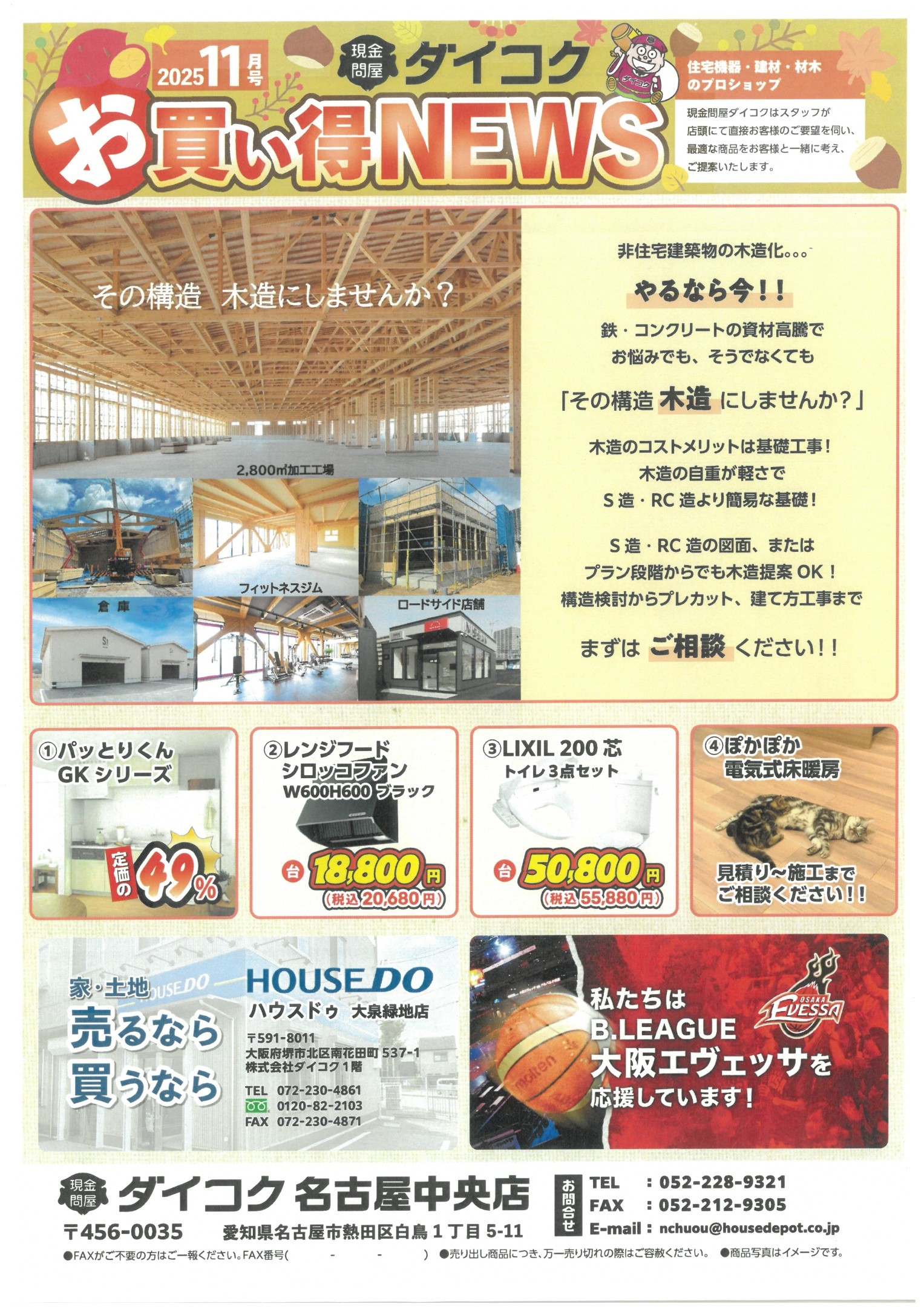 お知らせ「✨やるなら今‼️✨🌲非住宅建築物の木造化、床暖房のご相談受付中🌟【ダイコク名古屋中央店】」