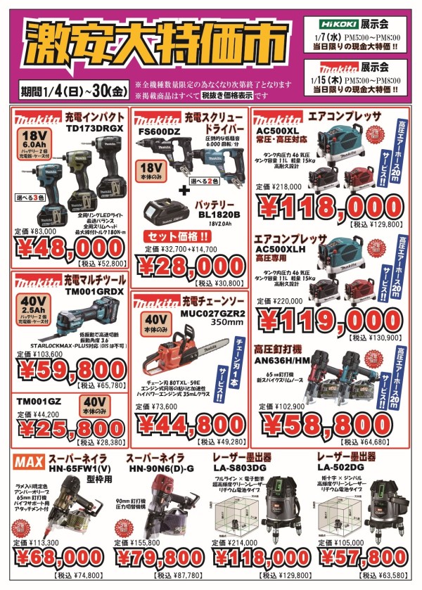 ★マキタフェア開催2026/1/15(木)17:00〜20:00★