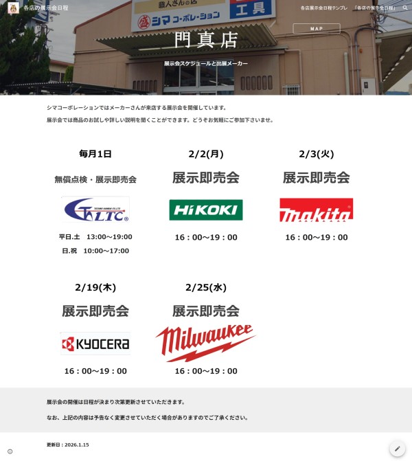イベント情報を更新しました。ご来店お待ちしております。