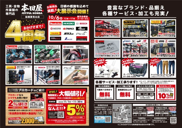 チラシ「おかげさまで4周年!感謝を込めて大展示会開催!」