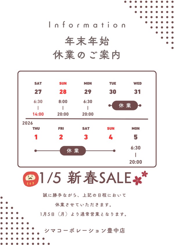 平素よりシマコーポレーション豊中店をご愛用頂き、