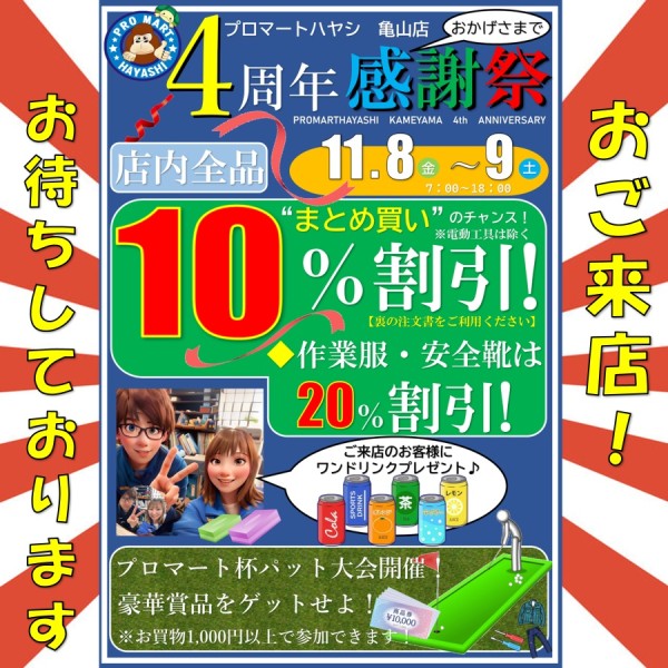 当日は店内商品が10%OFF(電動工具類除く)をはじめ