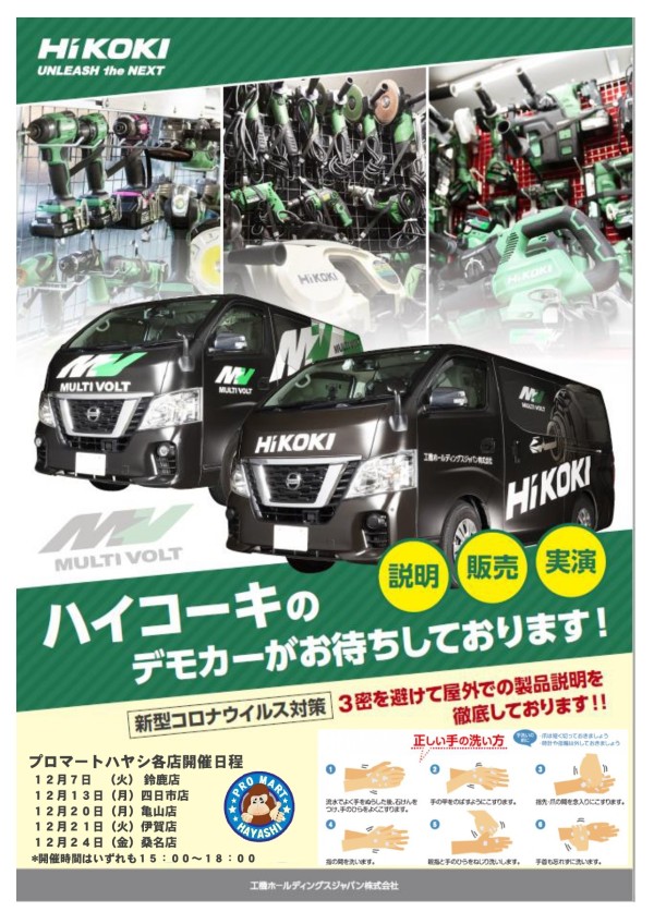 さらにこの12月、プロマートハヤシ各店にHiKOKIデモカーがやってきます!