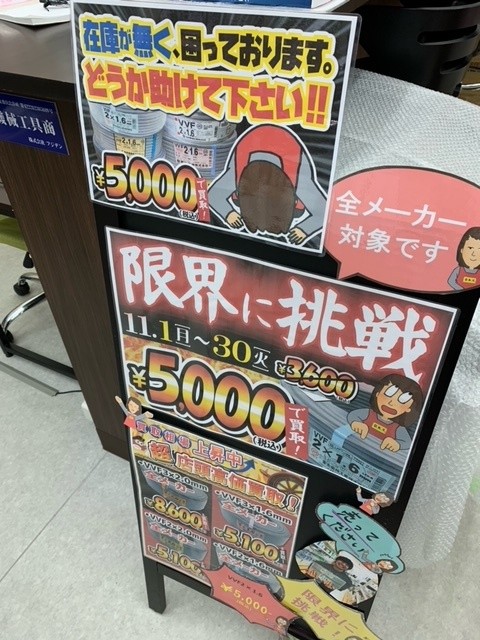 只今電材センターでは電線1.6ミリ2芯を5,000円で買取しております!!