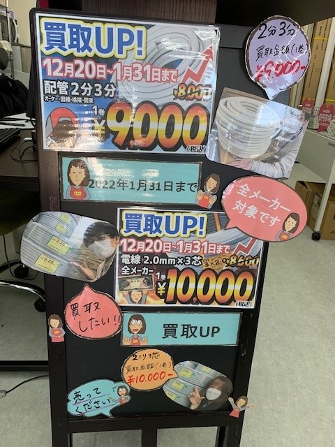 電線2ミリ3芯、配管2分3分が只今買取UP中です!!!!
