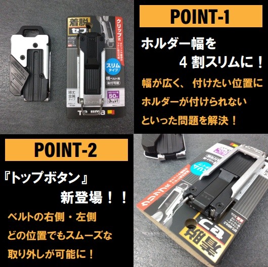 新たに登場したクリップ式はポケットや腰袋のフチにも取り付け可能に!✨