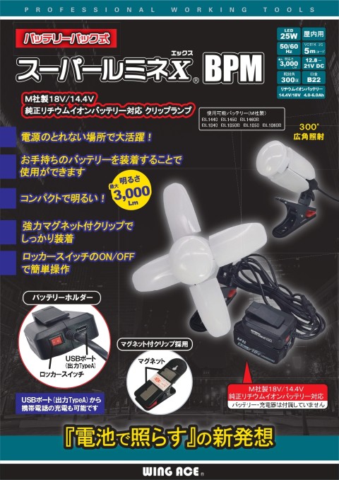バッテリーパック式LED作業灯 スーパールミネX BPM