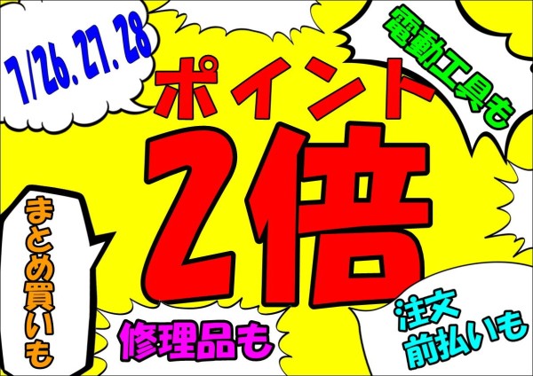 鶴見店3周年7/26.27.28ポイント2倍!!!