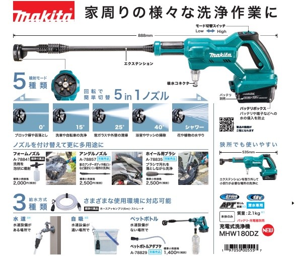 マキタ 新型!充電式洗浄機 MHW180D