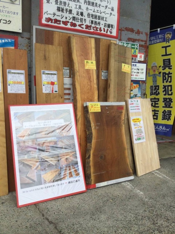 (^▽^)/本日より当店にて銘木、ゴムフリー板、杉フローリング等お買い得商品出しております。