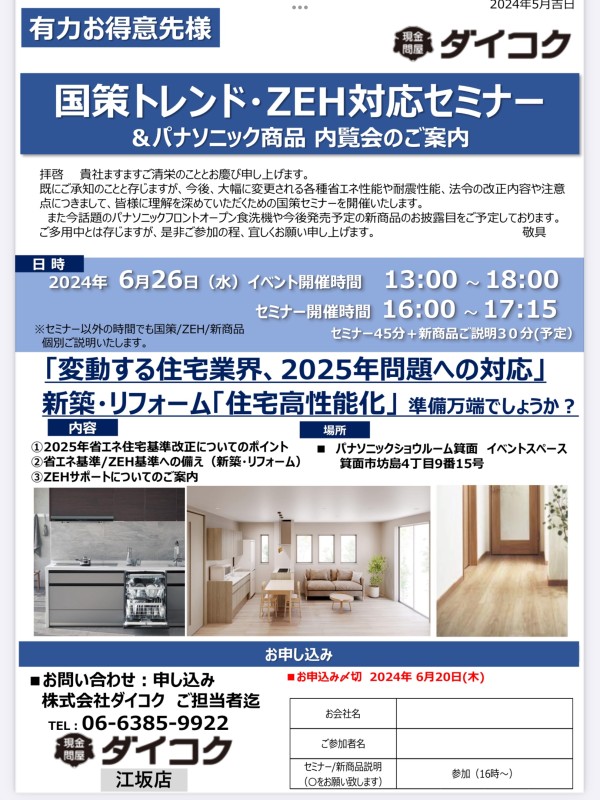 6月26日 パナソニック箕面ショールームにて商談会行います!