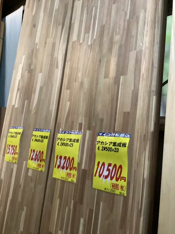 アカシアの集成板が入荷致しました。アカシアの木は成長が非常に早く、その割に