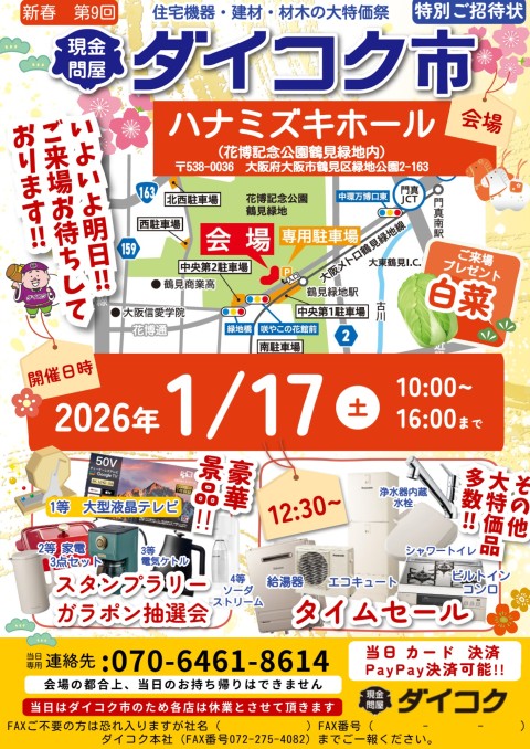 【明日開催】第9回ダイコク市のご案内【鶴見緑地公園ハナミズキホール】