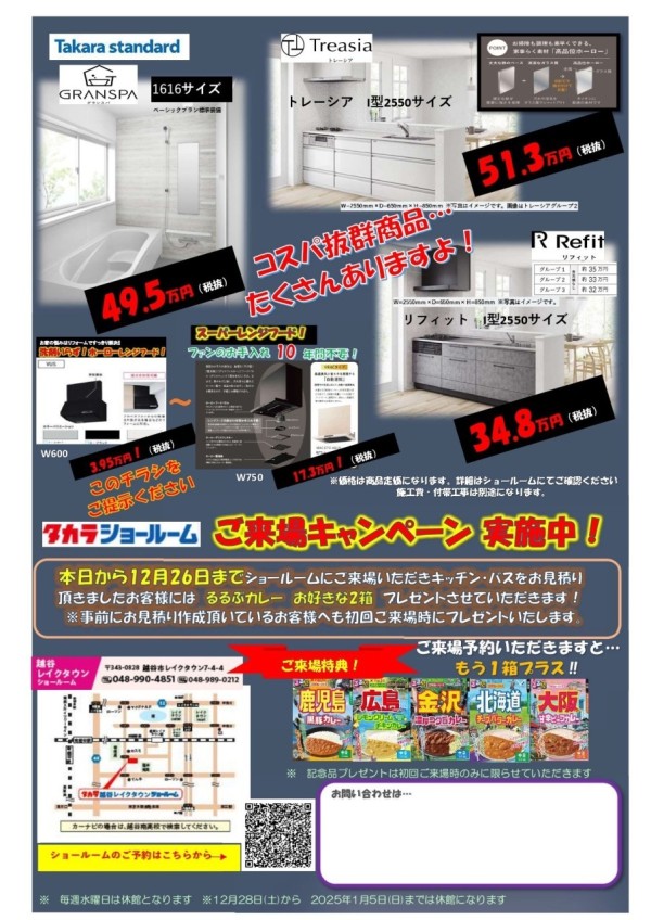12/26までタカラスタンダードショールームにてご来場キャンペーン開催中です