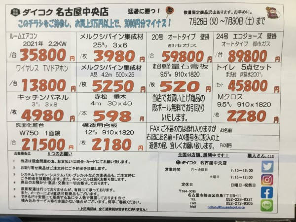 チラシ「このチラシを見た!と言っていただき、お買上3万円以上ありましたらマイナス¥3000-させていただきます。」