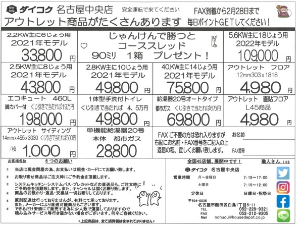 チラシ「ダイコク名古屋中央店2月最後のくじ引き価格あります!」
