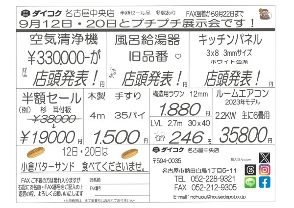 チラシ「12日・20日はプチプチ展示会!小倉バターサンド食べて元気に!」
