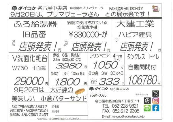 チラシ「9月30日迄のダイコク名古屋中央店の大特価セール!」