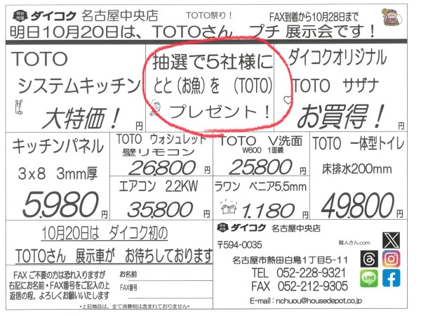 チラシ「明日はTOTO感謝祭!とと(お魚)プレゼント!」