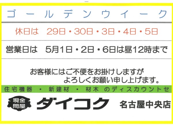 サイコロふって商品半額Day!カマーン! ゴールデンウイークご案内です。