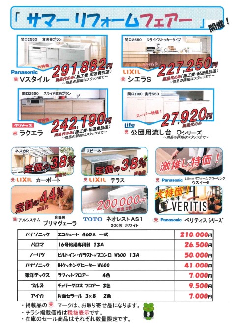 🏠「サマーリフォームフェアー / 同時開催 人気在庫品セール」!