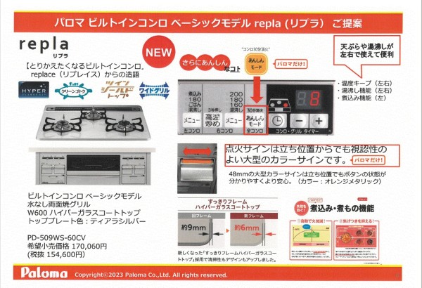 パロマ ビルトインコンロ ベーシックモデル リプラ
