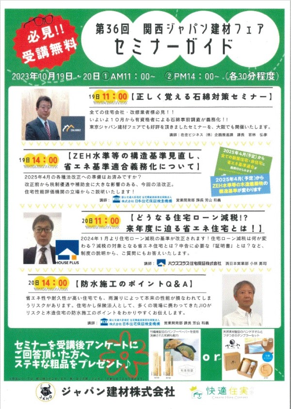 10月19・20日 関西ジャパン建材フェアが南港ATCホールで開催されます!