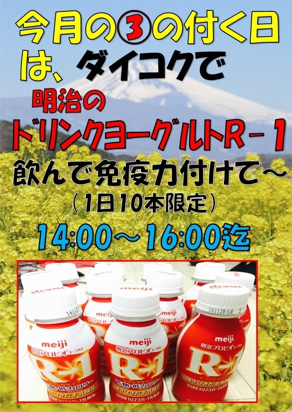 現在、ダイコク加古川店では、【③の付く日はダイコクへ】と3日・13日・23日・30日