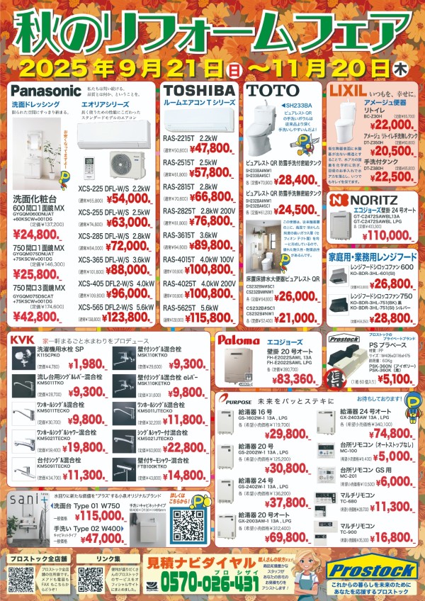 プロストック全店で”秋のリフォームフェア”が開催!