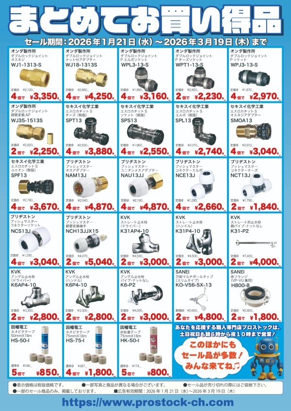 その他水道部材に加えて、エアコン部材等もお安くなっています♪