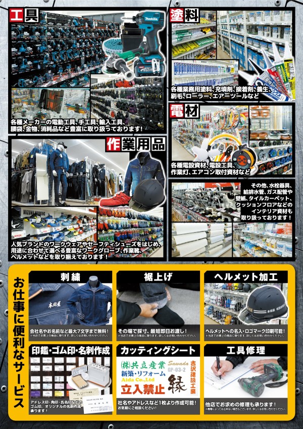 プロの皆さまに向けた工具・ 作業着はもちろん