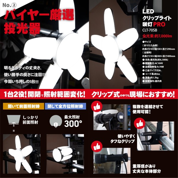 『LEDクリップライト咲灯PRO :CLT-70SB』をご紹介!