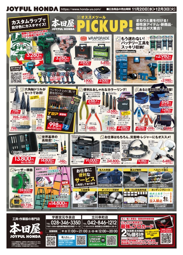 工具もまわりと差をつけるカスタムラップや珍しいカラーの個性派アイテム、新商品、限定品が大集合!