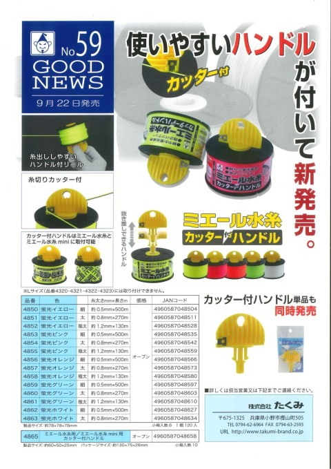 【新商品】 ミエール水糸にカッター付きハンドルがついて新登場!