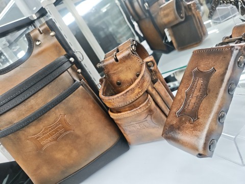 その中の【ヌメ革】と呼ばれる染色加工を施されていない革製の腰袋&工具差しは