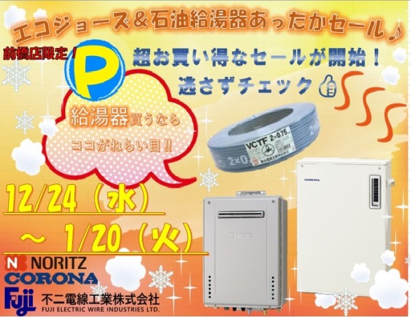 ・エコジョーズ&石油給湯器あったかセール♪ 12/24(水)~1/20(金)