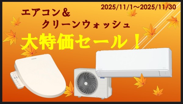 ・エアコン&クリーンウォッシュ大特価セール 11/1(土)~11/30(日)