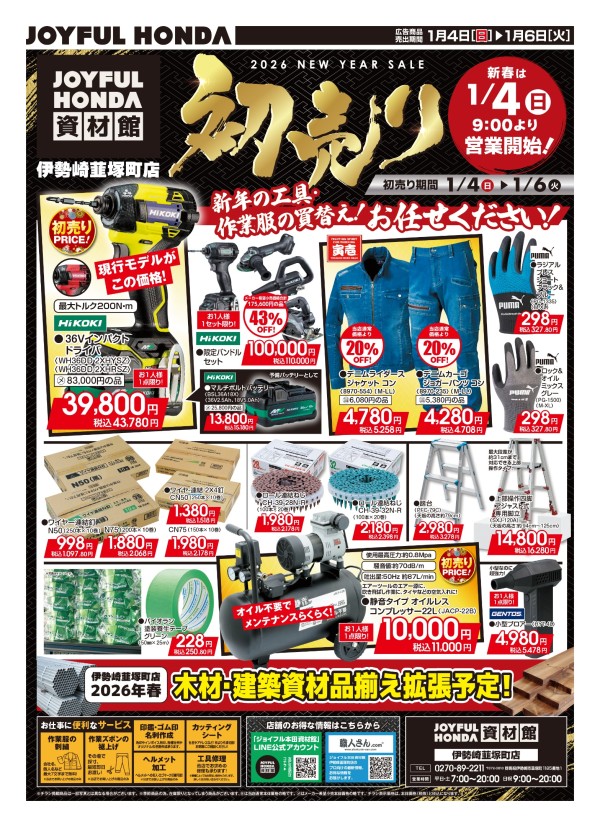 新年の仕事始めに工具や作業服の買い替えお任せください!