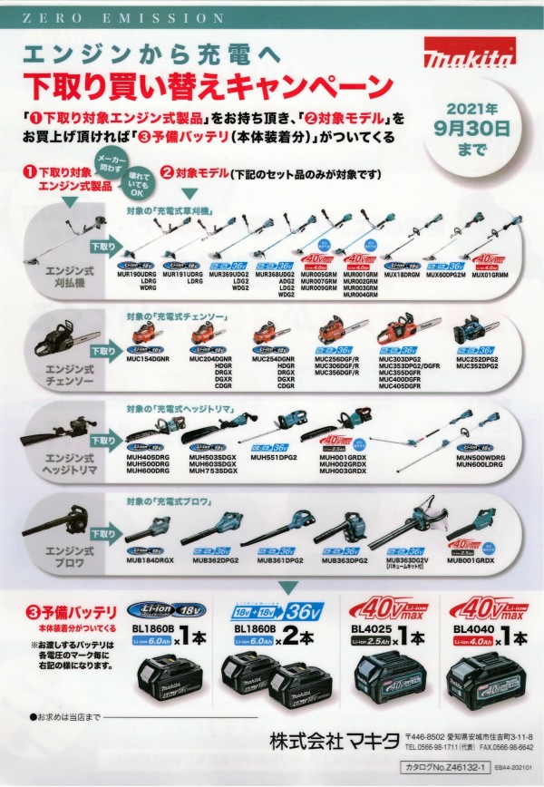 マキタ エンジンから充電へ 下取り買い替えキャンペーン